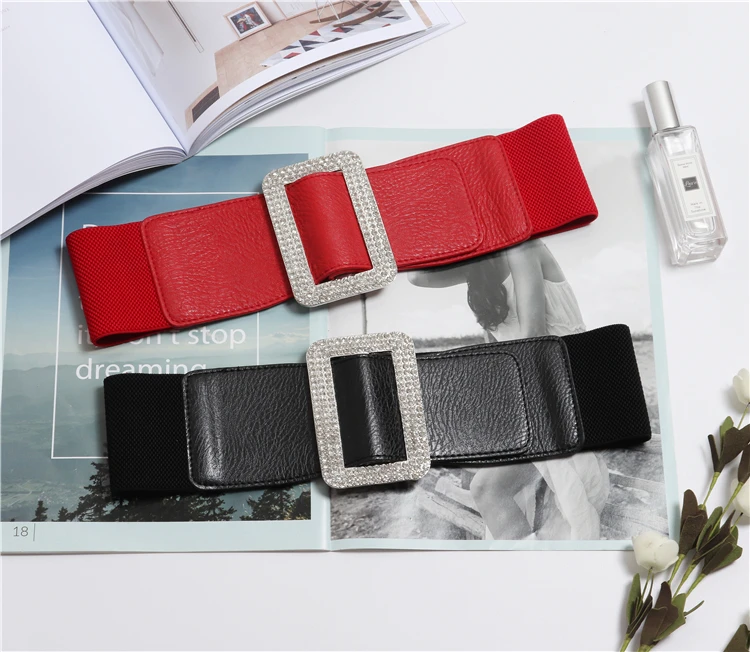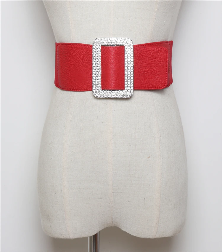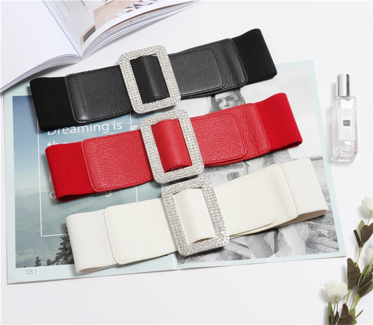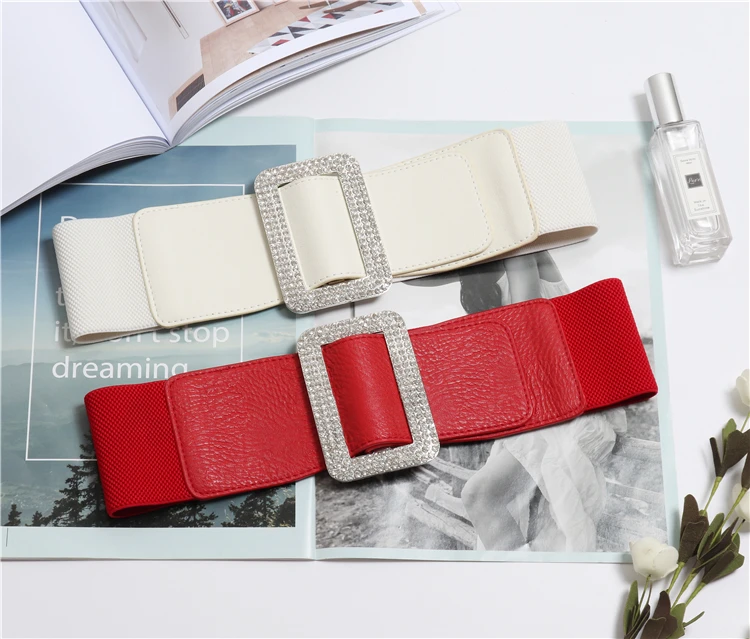 Ремень женский эластичный из искусственной кожи, с пряжкой, для рубашек, курток, осенний, красный, белый