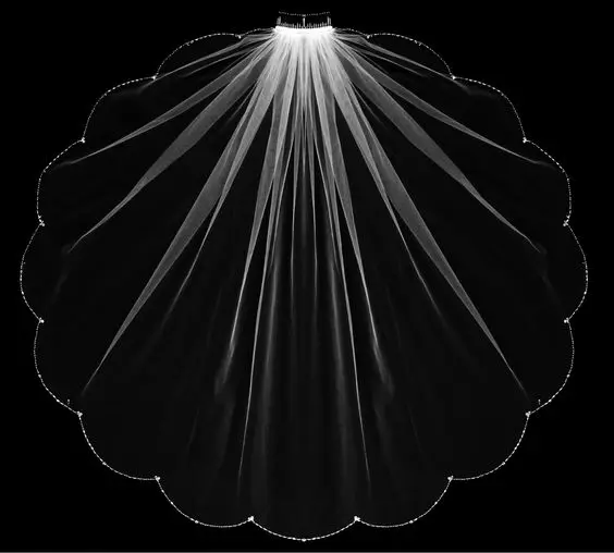 Простая кружевная свадебная фата цвета слоновой кости с рюшами, свадебная фата Аманда, однослойная