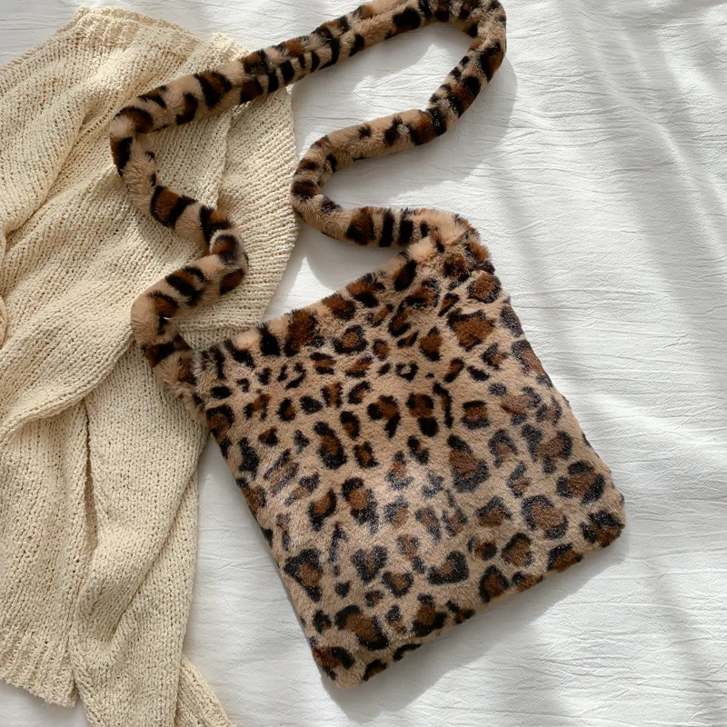 Леопардовые плюшевые сумки на плечо для женщин, осень и зима, модны...