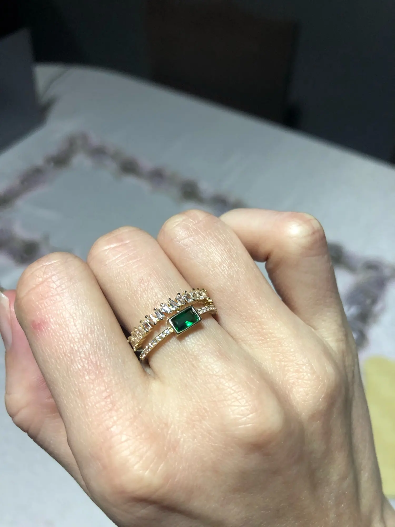 Кольцо женское Двухслойное, зеленое, в Корейском стиле, 2020