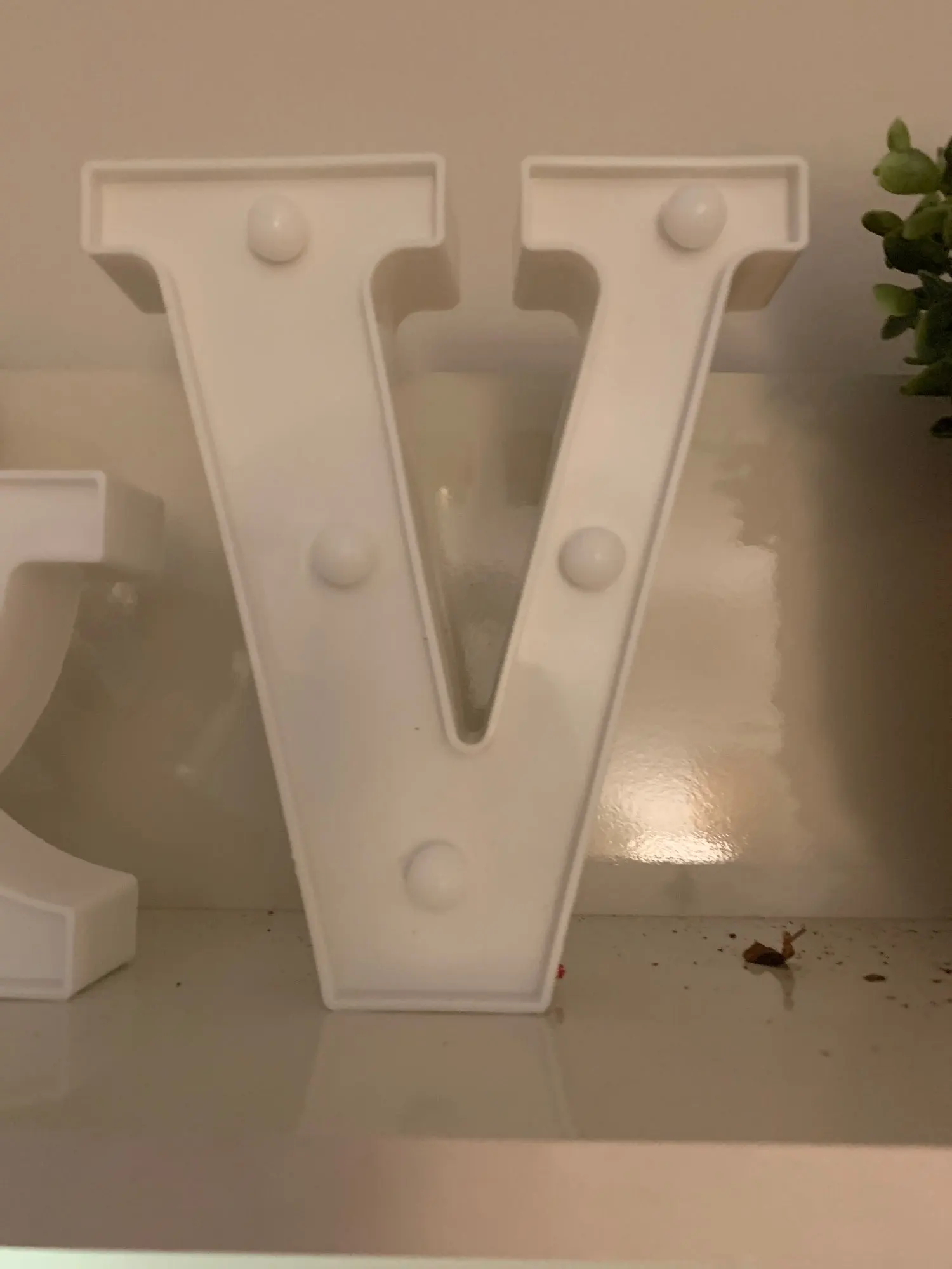 These are very cute! Letters are plastic, so there is some sheen to the letters. It has with warm white lights, and takes 2 AAA batteries, not included. It shipped to Canada within 33 days, which i expected. Each letter is about the size of my hand, see photos.