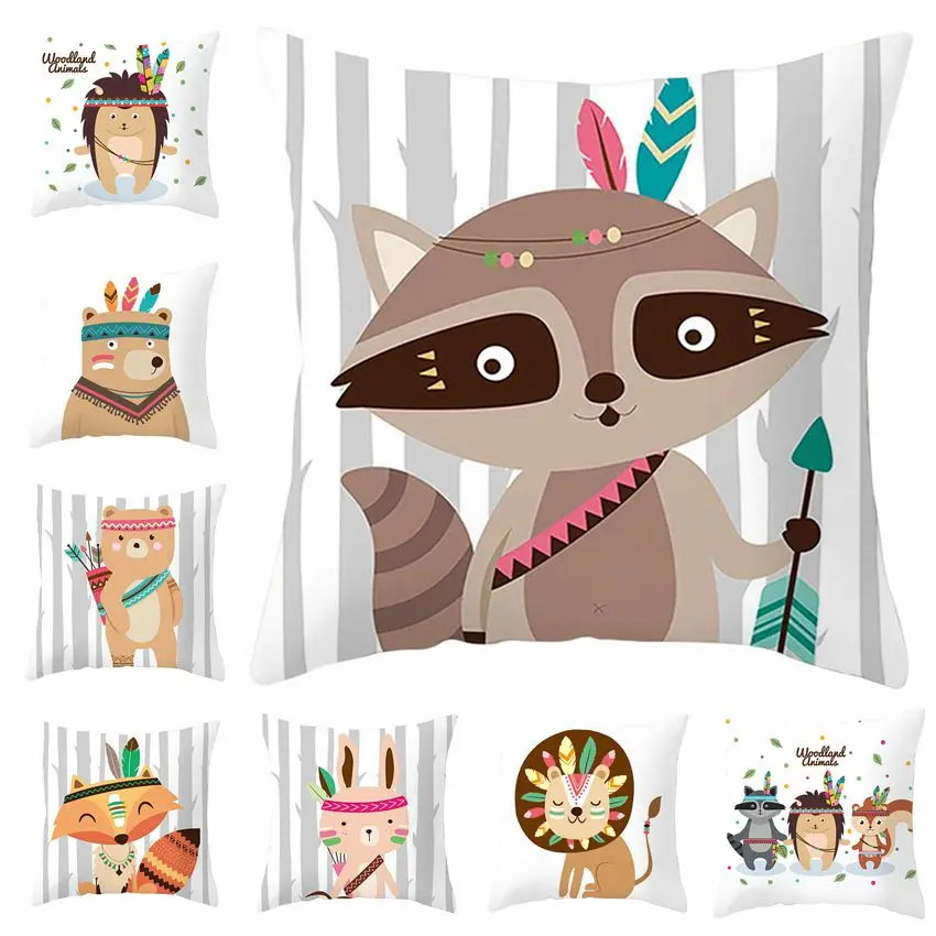 Чехол для подушки с изображением лесных животных, мультяшный креати...