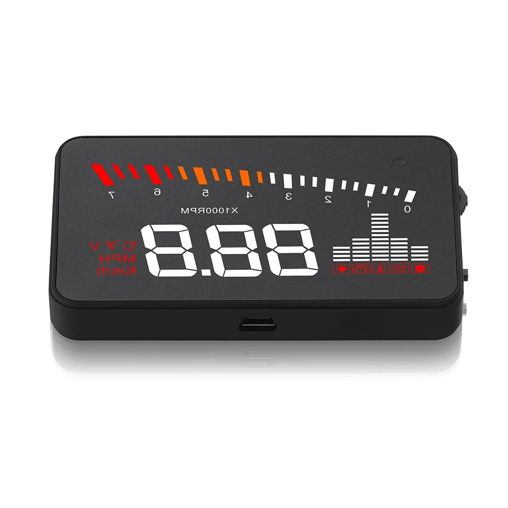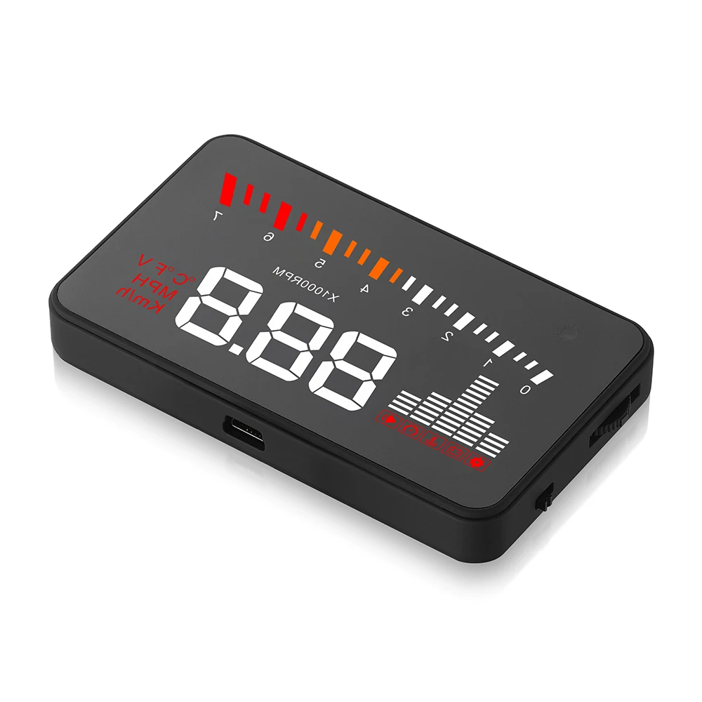 HUD короткий для дисплея головы вверх. Он отображает данные о вождении на лобовом стекле, такие как скорость, об/мин, температура воды, напряжение на переднем стекле автомобиля; Избегайте небезопасности водителей из-за просмотра инструмента во время вождения. Водители могут мгновенно читать информацию о вождении и всегда могут поддерживать Наилучшее Состояние на пути с HUD.
