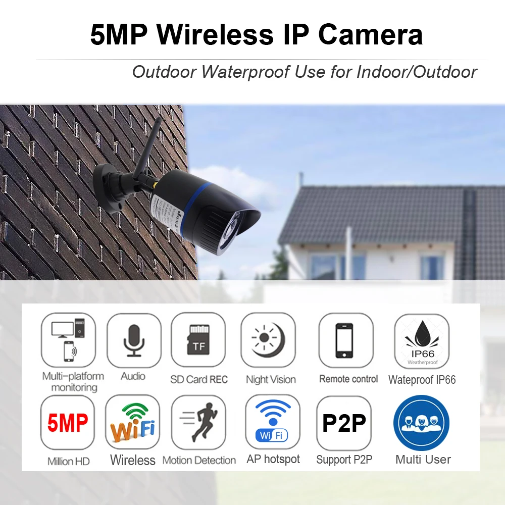 5-мегапиксельная беспроводная камера видеонаблюдения IP XMEye наружная Водонепроницаемая камера видеонаблюдения инфракрасная Ночная Wi-Fi аудио HD домашняя камера IP ICSee