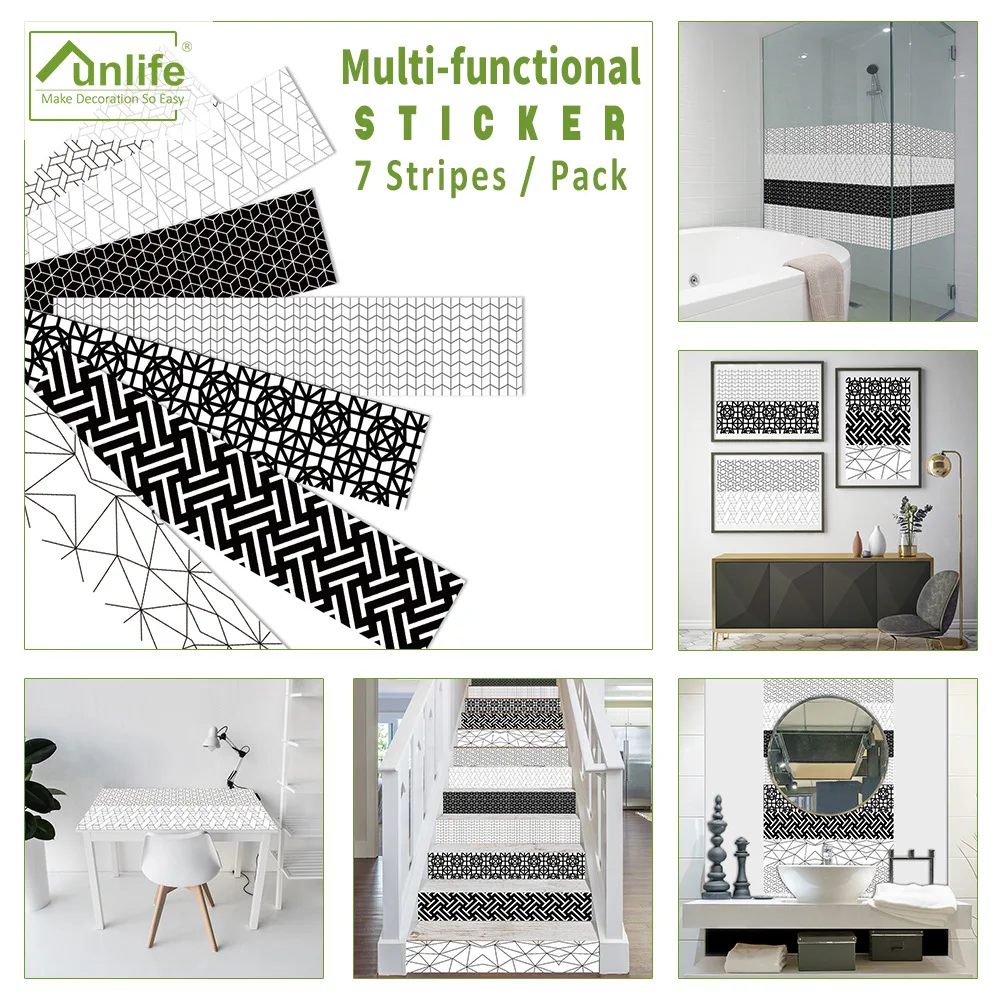 Геометрическая клейкая виниловая пленка Funlife для мебели, гостиной, офиса, ванной, лестницы, стекла, декоративные наклейки для лестницы