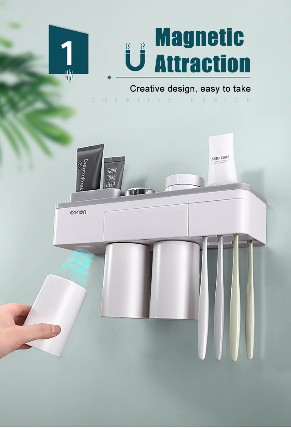 Магнитный держатель для зубных щеток, автоматический соковыжималка для зубной пасты, полки для хранения в домашних условиях, набор аксессуаров для ванной