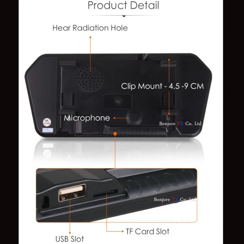 Новейший Full HD 7 "автомобильный TFT ЖК-монитор зеркало заднего видаСВстроенныйBluetooth Mp5 fm-динамикСлот USB TF для фото-дисплея1024*600Светодиодный экран