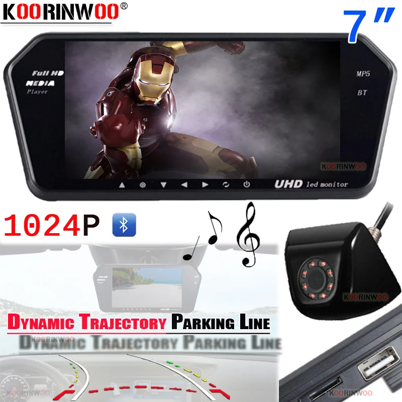 Беспроводная парковочная Автомобильная медиакамера Koorinwoo 7 "с зеркальным монитором 1024P, цифровой Bluetooth вызов, музыка, динамическая траектория, камера заднего вида