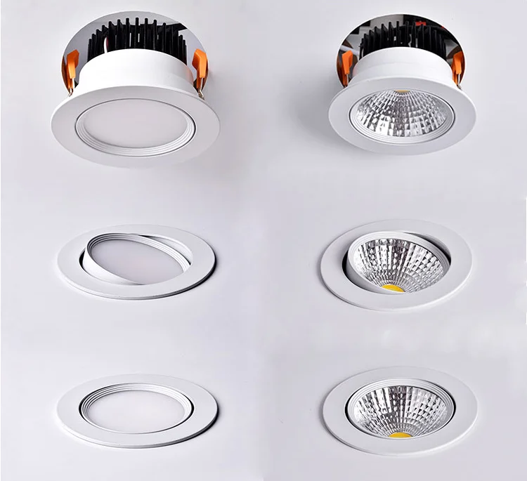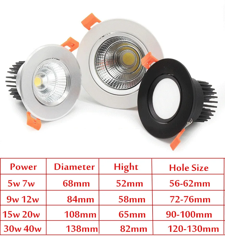 Приглушаемые встраиваемые светодиодные светильники, потолочные комнатные лампы с COB матрицей, 5 Вт, 7 Вт, 9 Вт, 12 Вт, 15 Вт, 20 Вт, 30 Вт, точечные потолочные светильники, 110-240 В