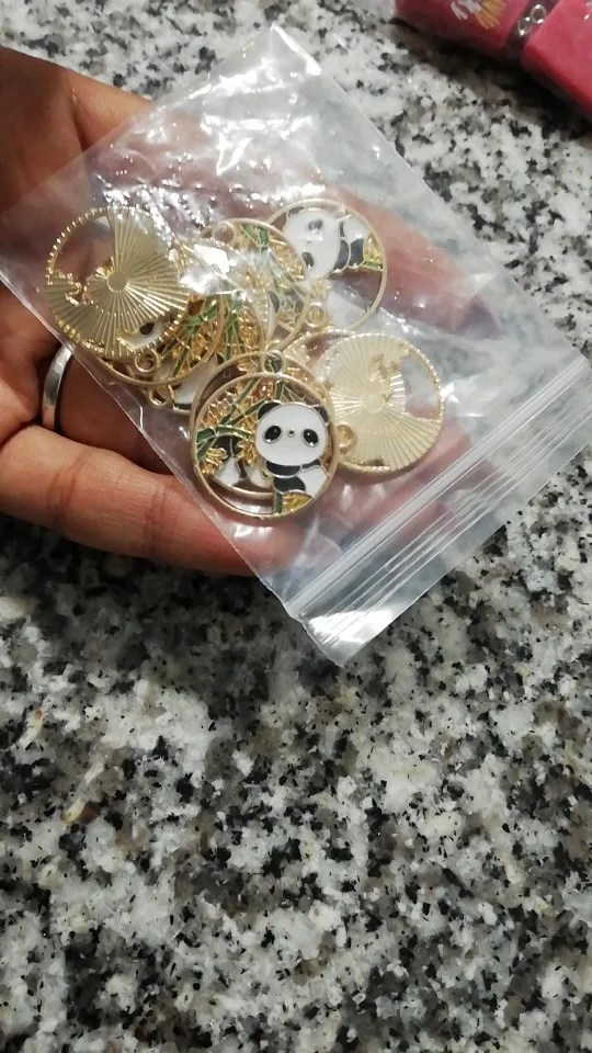 10 шт./пакет с милой пандой Эмаль Подвески бамбук панда подвески для самодельные Украшения, Аксессуары Круглый Золотой недрагоценных металлов Кулоны из нержавеющей стали