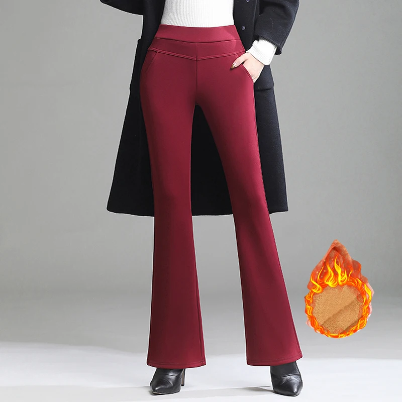 Теплые женские брюки клеш, зимние Утепленные флисовые брюки, черные, синие, красные, эластичные брюки с высокой талией, теплые леггинсы с вельветом, S-4XL