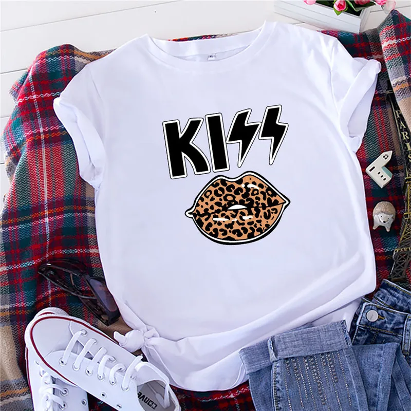 Женская футболка с круглым вырезом, коротким рукавом и леопардовым принтом
