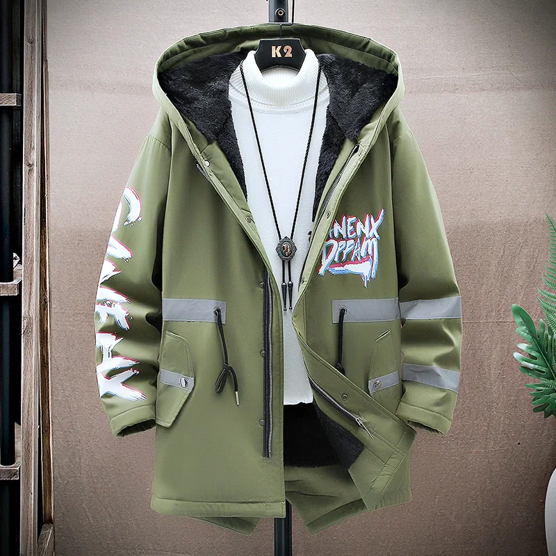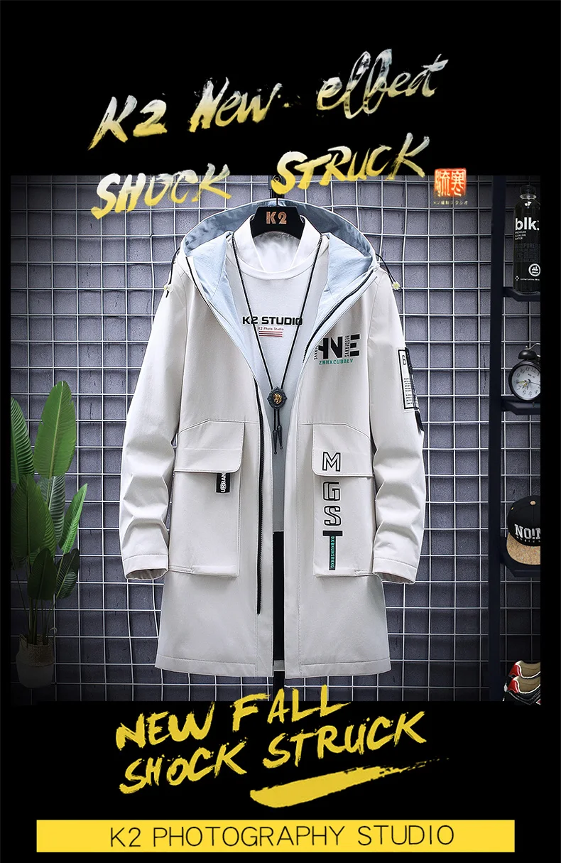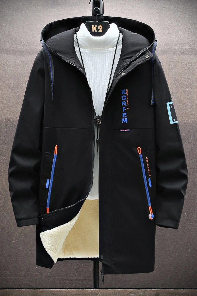 Пальто мужское длинное с капюшоном, в стиле хип-хоп, на осеньзиму