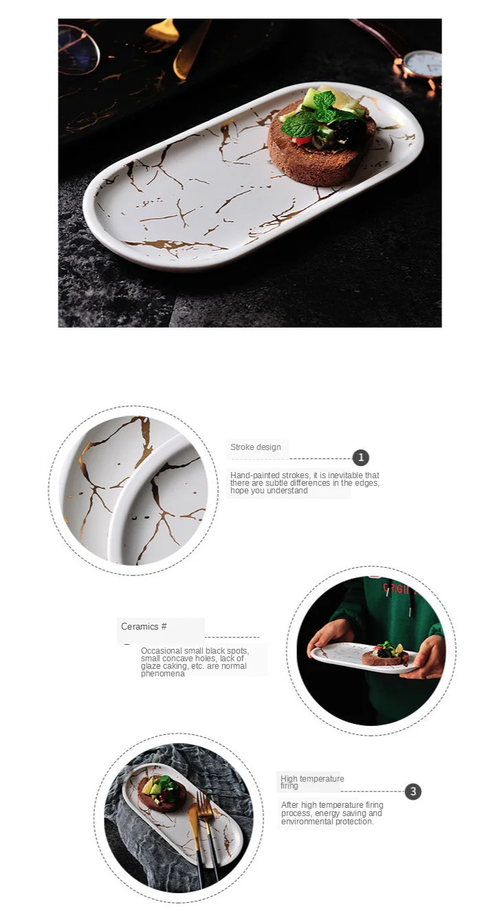 Мраморная керамическая овальная тарелка, креативное блюдо, поднос для хранения ювелирных изделий, тарелка для фруктов, пиццы, посуды, фарфора, суши