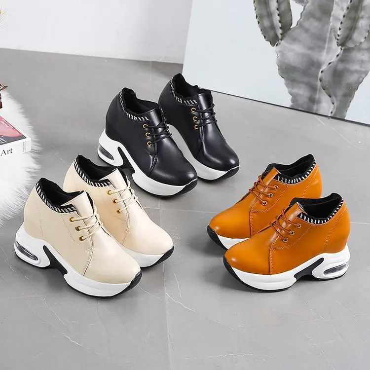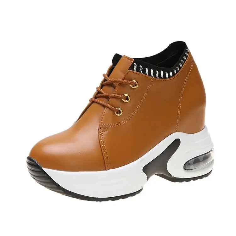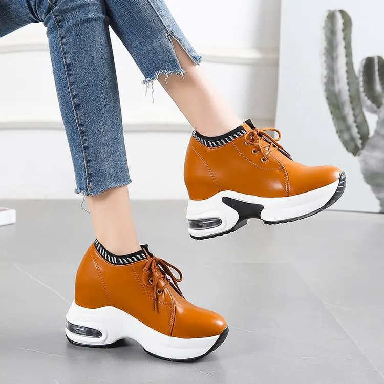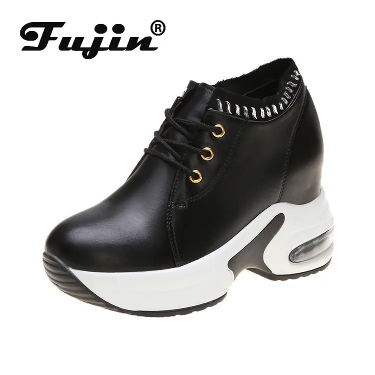 Fujinженские кожаные кроссовки на платформе; Обувь на массивной танкетке; Дышащая удобная женская обувь на шнуровке; Вулканизированная обувь