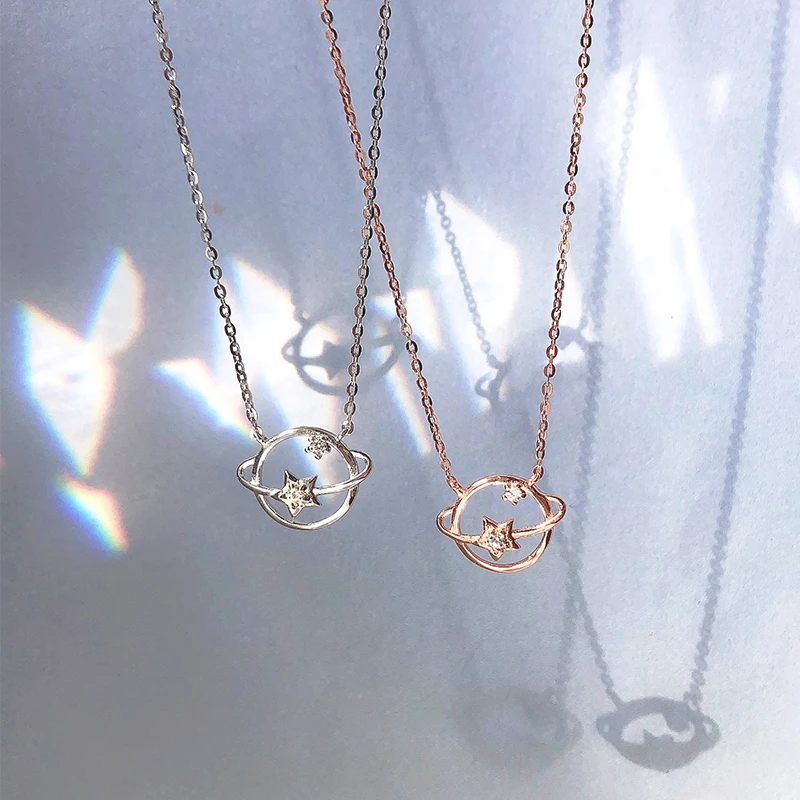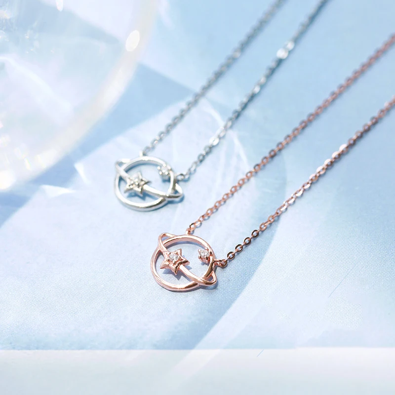 Ожерелье женское на цепочке длиной до ключиц, с фианитом, розовое золото