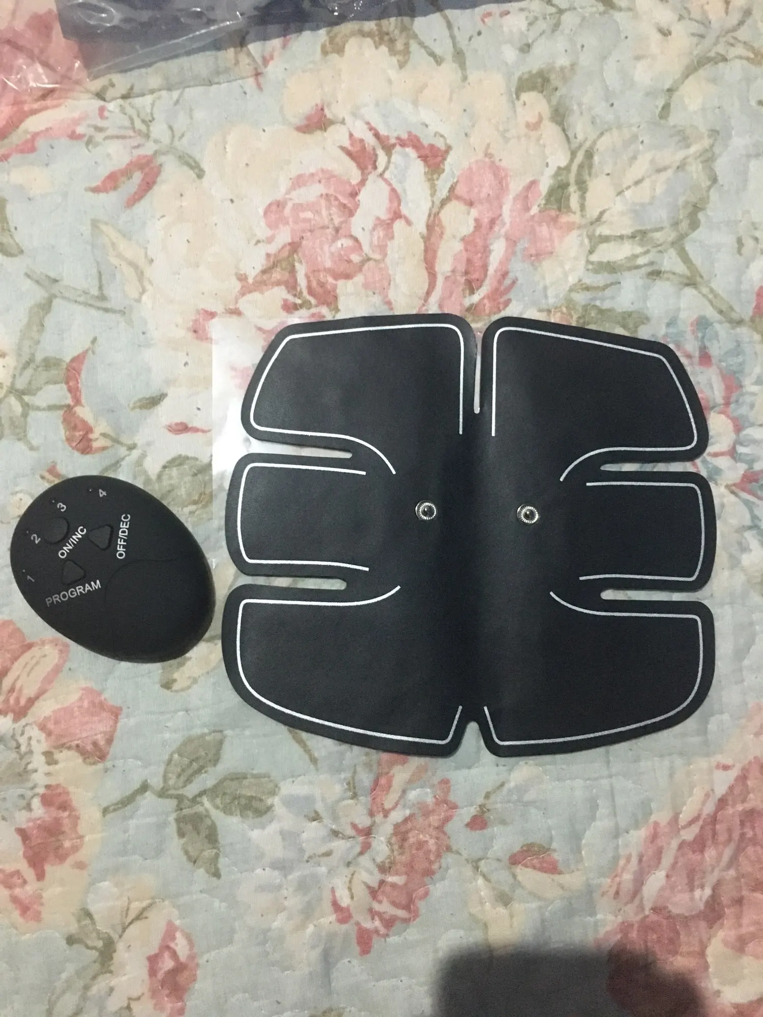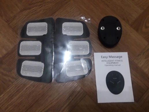 Давно хотела попробовать такую вещь и вот моя мечта осуществилась! Продавец молодец, быстро отправил товар, доставка 2 недели. Товар пришёл в прозрачном zip-пакете. Пластырь на пресс был в вакуумном запечатоном пакете. Есть инструкция. Для работы нужны мини батарейки ААА. Пульт управления крепится с помощью двух заклепок. На пресс устройство приклеивается с помощью 6 липучек, со временем их надо будет менять, чтобы проходил ток. Всего есть 6 режимов: 1, 2, 3, 4, и совмещенные 1+2, 3+4. Режимы 1 и 2 слабые, а вот 3 и 4 ощутимые. Проработка мышц идет хорошо и через полчаса даже ощущается сильное напряжение. Следов на коже не остается. Товар, продавца и магазин РЕКОМЕНДУЮ!