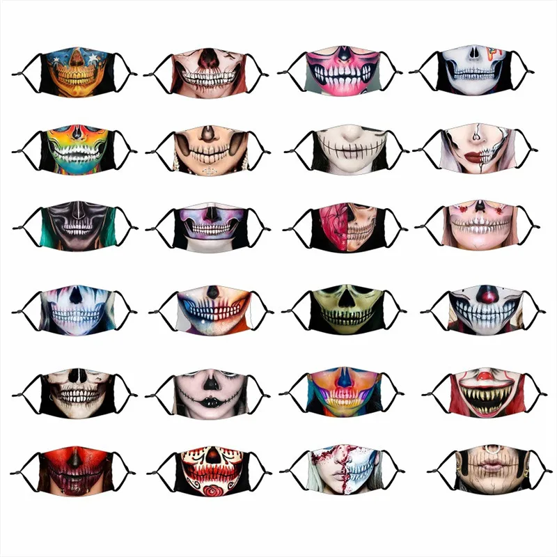 Хэллоуин косплей полиэстер маска для лица Забавный демон клоун Скелет велосипедные маски 3 слоя моющиеся Чехлы для лица Mascaras