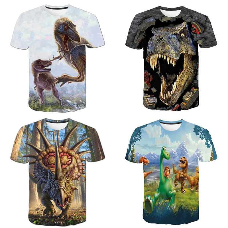 Летняя брендовая новая детская футболка с 3D динозавром для мальчиков и девочек Детские футболки с короткими рукавами Повседневные топы для малышей
