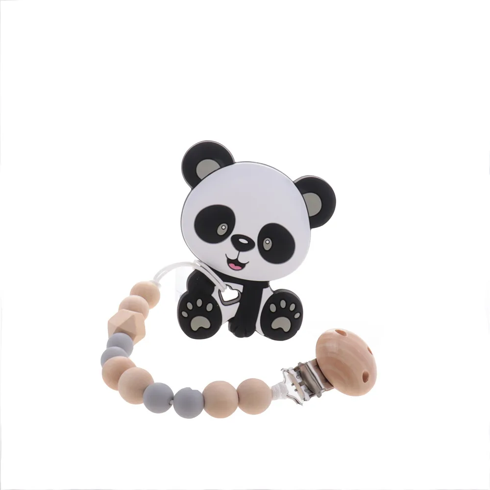 10 шт. силиконовый детский Прорезыватель для зубов с пандой без бисфенола, ожерелье для прорезывания зубов для новорожденных, цепочка для соски, аксессуары для грызунов, пищевая подвеска, игрушка DIY