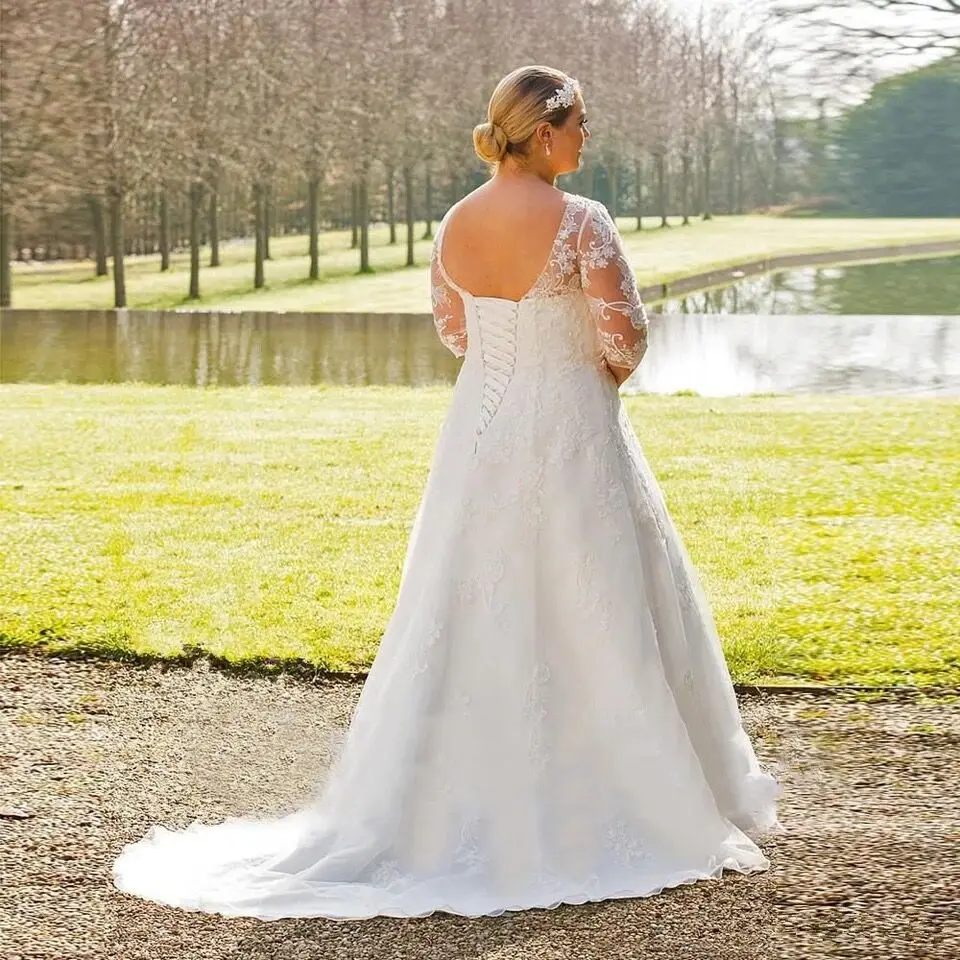 Кружевное свадебное платье с V-образным вырезом, рукавом до локтя