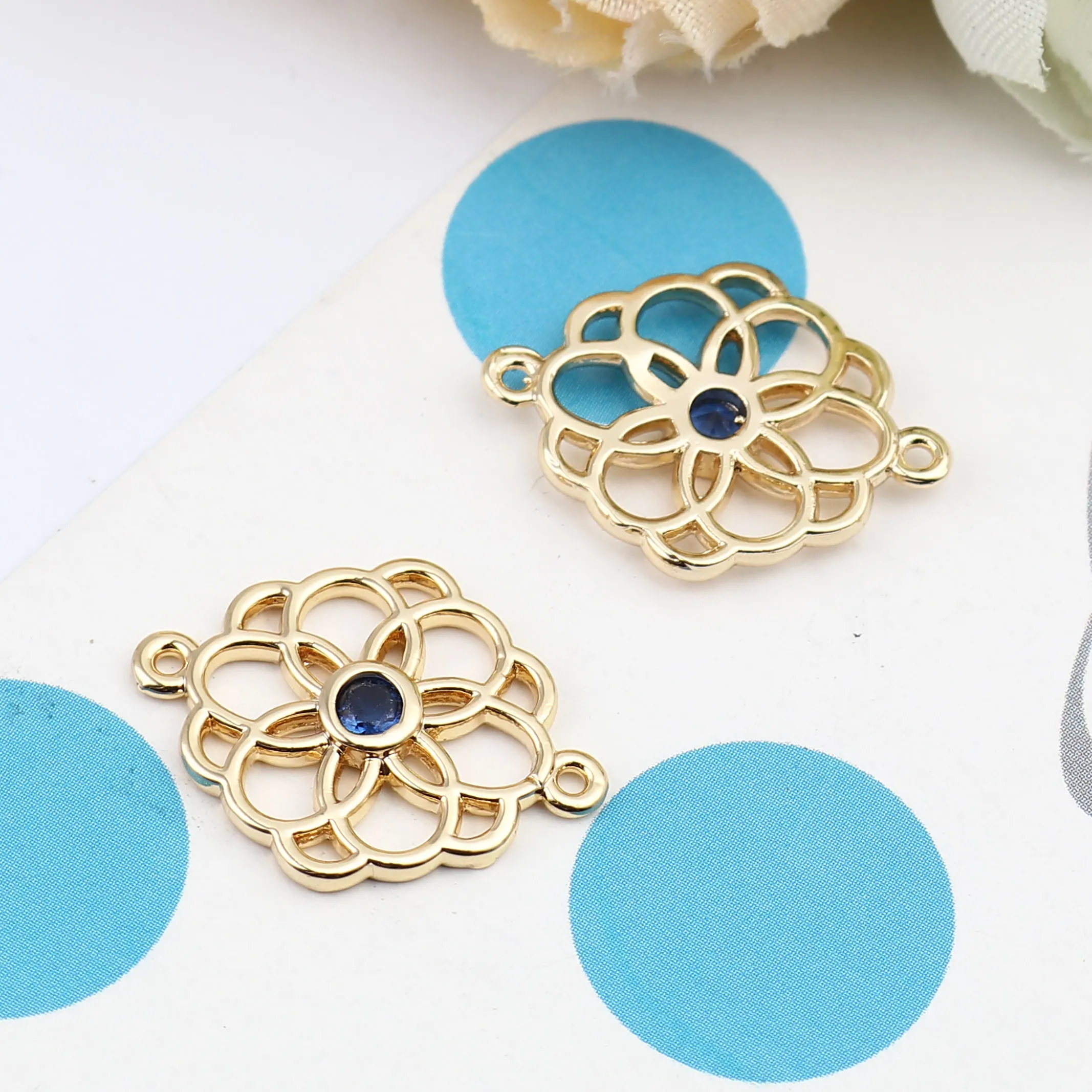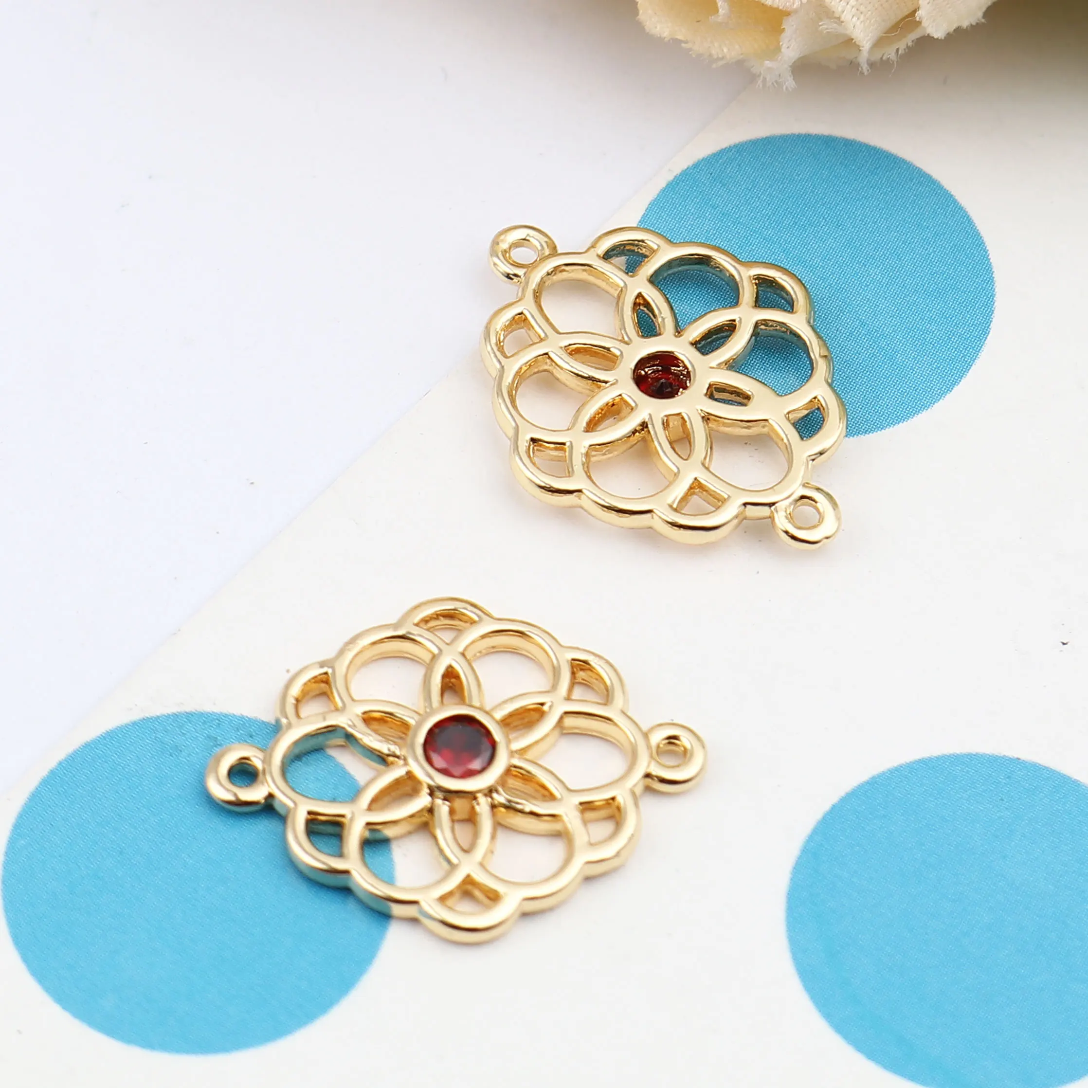 Соединители пустотелые в форме цветка, медные, золотые стразы 20 мм x 15 мм для самостоятельного изготовления ювелирных изделий, ожерелья, 2 шт.