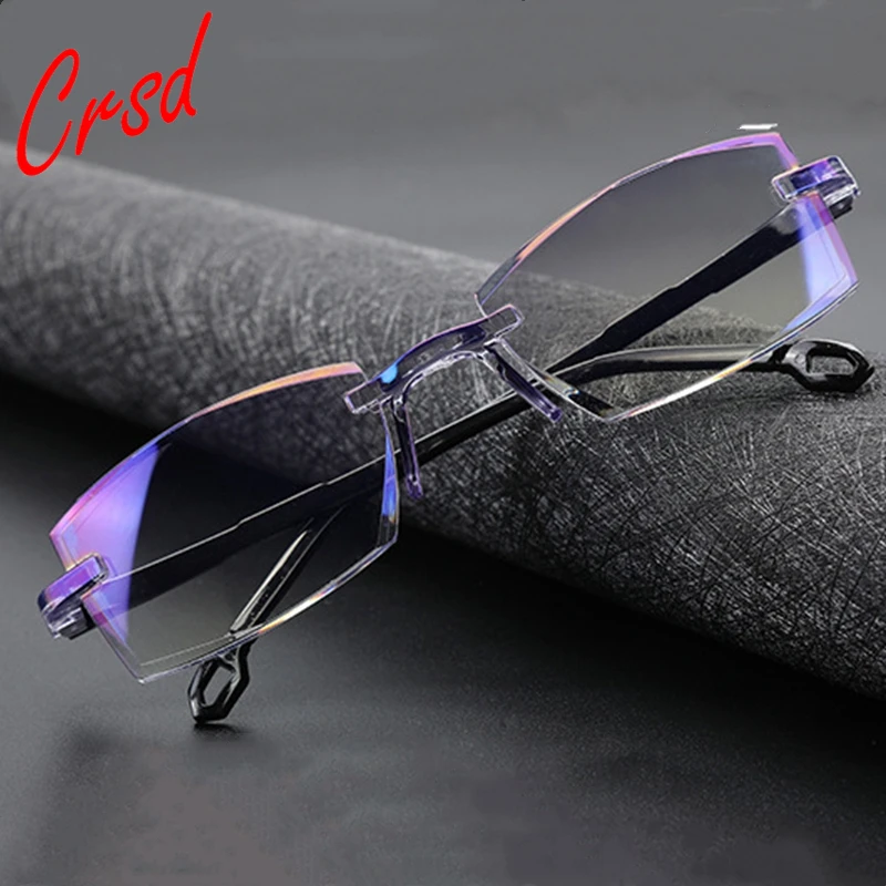 Мужские и женские очки для чтения без оправы, анти-синий светильник, увеличение, очки для дальнозоркости, диоптрий + 150 + 200