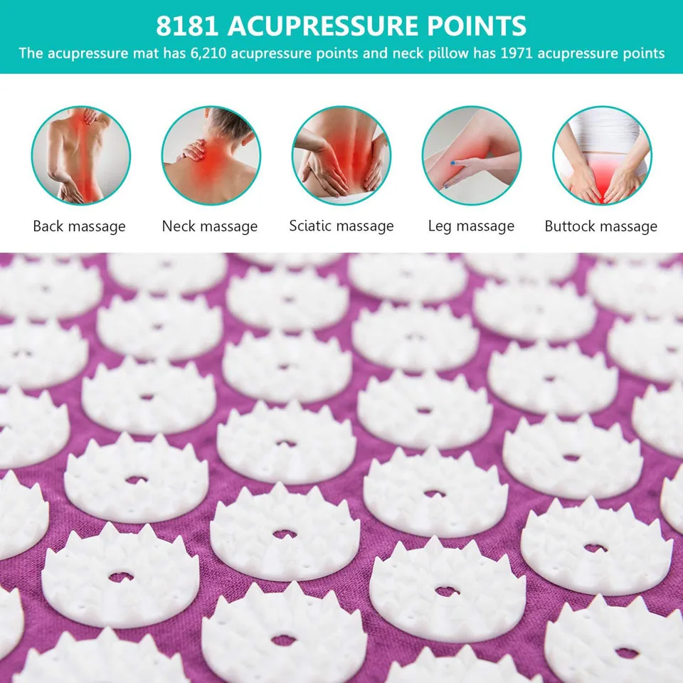 Что такое акупрессуровый Мат? Состоит из тонкого коврика, покрытого шипами из АБС-пластика. Он вдохновлен древними индийскими традициями исцеления, которые, как считается, были вокруг в течение тысяч лет. Тысячи шипов, которые были стратегически размещены на коврике и подушке, безвредны для кожи и обеспечат вашему телу целебные преимущества. Как это работает? Акупрессуровый коврик является идеальным помощником для самостоятельного лечения. Он работает таким же образом, как акупунктура, обеспечивая релиз эндорфинов вашего тела, которые обладают способностью производить анальгезию и ощущение самочувствия. Многие люди имеют различные реакции на это, которые могут включать в себя: счастье, ясный ум, больше энергии и расслабление. При регулярном использовании в течение достаточно длительного периода времени набор для акупрессуры может:-повысить уровень энергии-улучшить кровообращение-уменьшить стресс-облегчить боль в шее и спине-уменьшить кровяное давление-облегчить головные боли-улучшить сон. Как использовать? Поместите коврик на землю с шипами, указывающими вверх. Ложитесь на коврик. Коврик позволит Вам ориентироваться на изогнутые области, такие как шея, поясница и даже ноги. Предпочтительно делать это ежедневно в течение 10-30 минут одновременно или при желании. Для начинающих может быть лучше начать в течение более короткого периода времени и/или носить рубашку или поместить тонкую ткань между шипами и вашей кожей. Размер коврика около 68*42 см Размер подушки около 37*14*10 см Предупреждение: не подходит для детей до 5 лет. Инструкции по очистке: Только ручная стирка, используйте теплую воду и сушите. Примечание: Из-за разницы между различными мониторами изображение может не отражать фактический цвет изделия. Мы гарантируем, что модель реального изделия не отличается от представленной на фото.