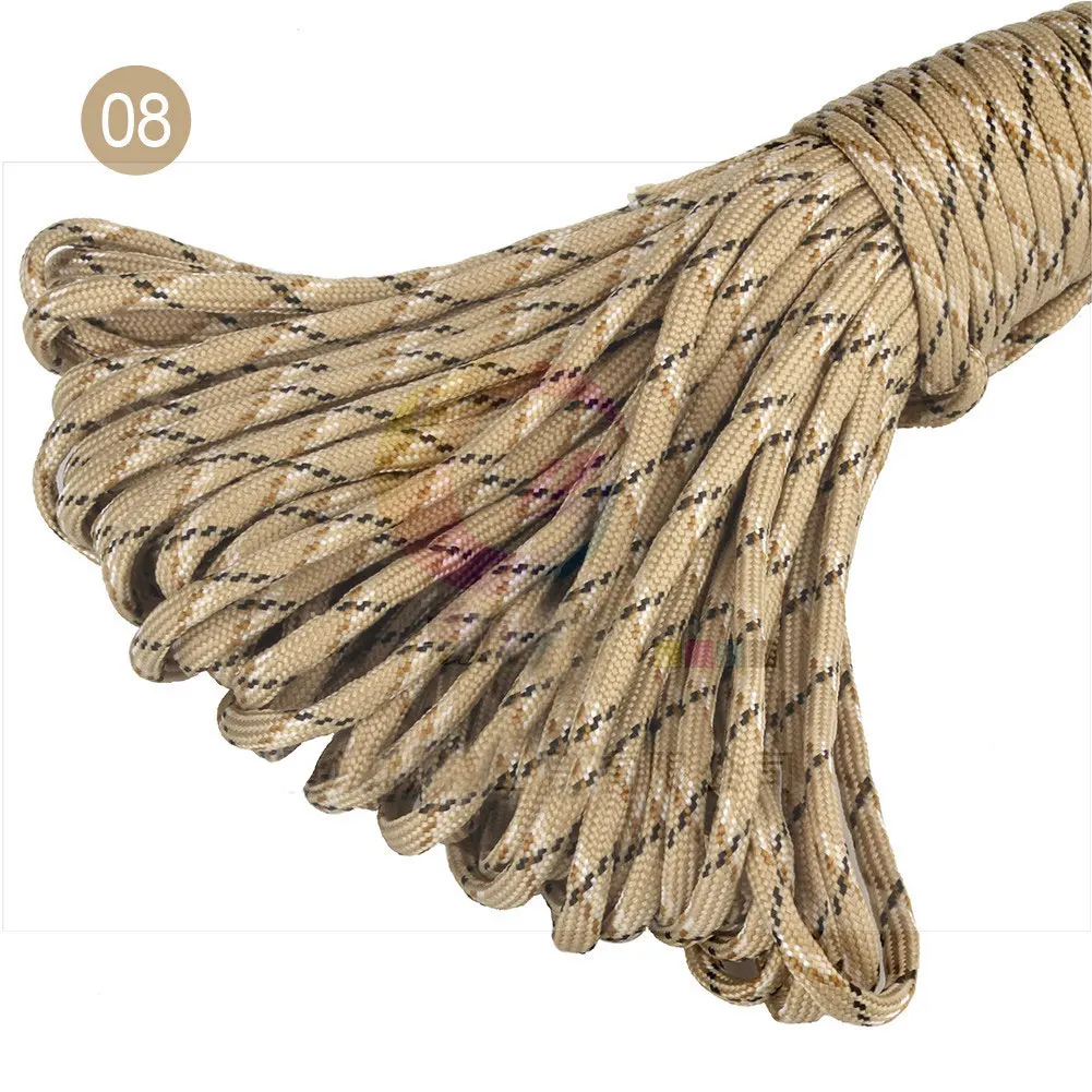 Оборудование для обвязки, трос для палатки и т. д., используется для гемостаз, прицепы, первая помощь, обвязка временных палаток во время выживания в пустыне, упаковка рукоятки ножа, ручки для палки, метательные тросы, соединительные тросы нунчаку, веревки для обвязки рогатки, оборудование для обвязки, веревка для палатки, И т. д. используемые материалы специально используются для зонтичные канаты, которые такие же, как веревки, используемые на морских судах, и имеют преимущества коррозионной стойкости и устойчивости к старению.