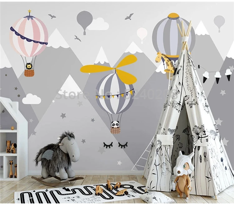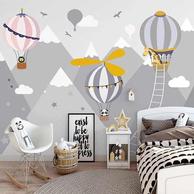 Самоклеящиеся водонепроницаемые Настенные обои, 3D Ручная роспись, Мультяшные воздушные шары, животные, наклейки на стену для детской спальни