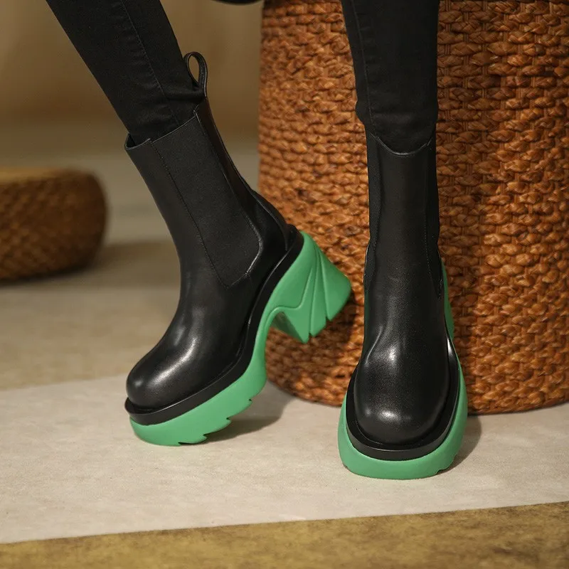 Новинка, роскошные женские ботильоны челси, зимняя обувь на массивной подошве, ботильоны на платформе, брендовые дизайнерские ботинки без шнуровки на массивном каблуке