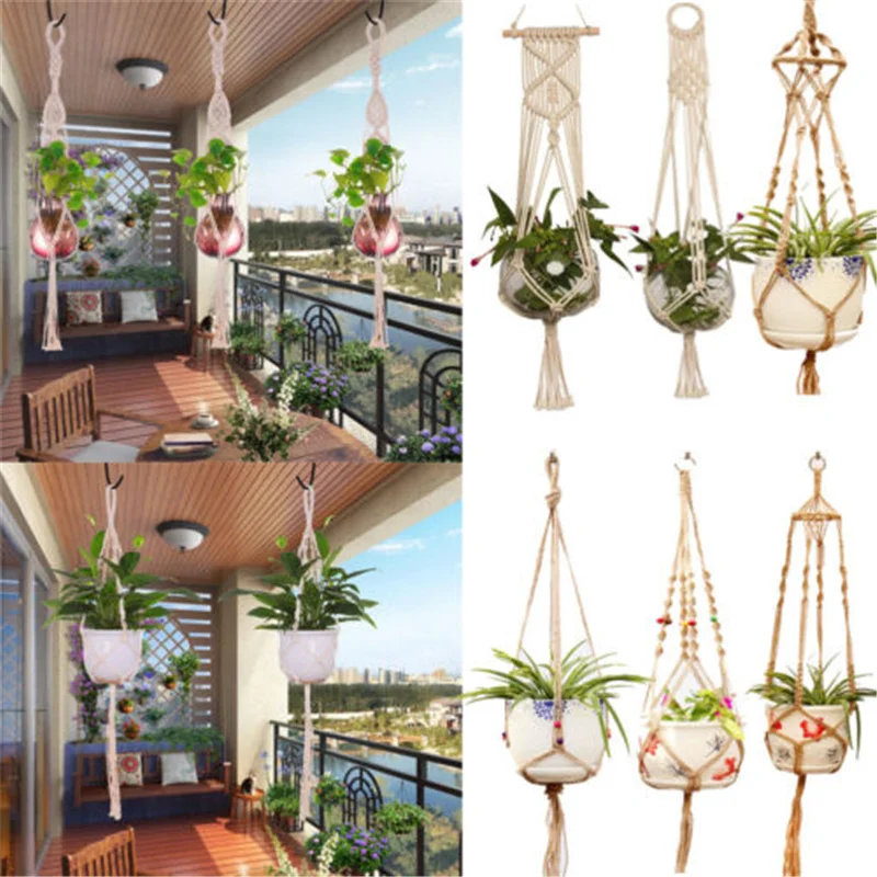 Винтаж Декор подвесные корзины цветочный горшок держатель для растений горшок Подвеска для растений из макраме подвесной ящик для комнатных растений, корзина из джута, сплетеный ремесло