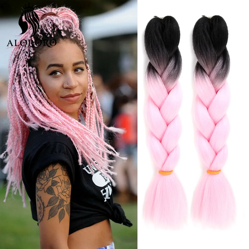 Alororo Омбре плетеные волосы синтетические косы 24 дюйма афро розовые Джамбо косы наращивание волос для кос 100 цветов