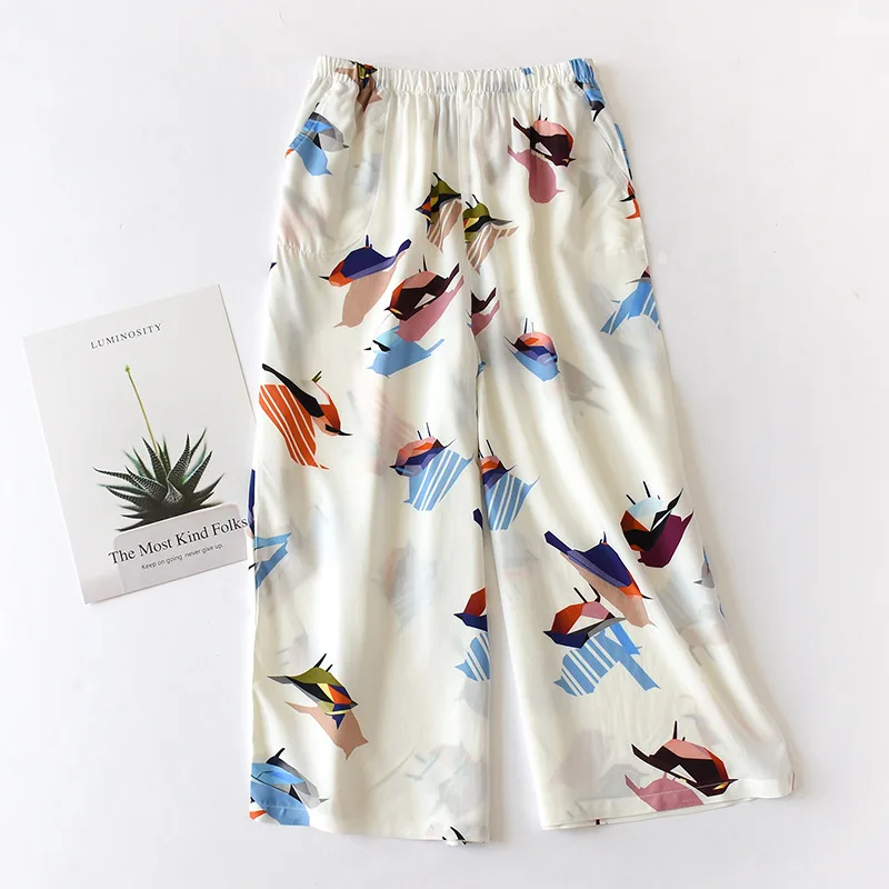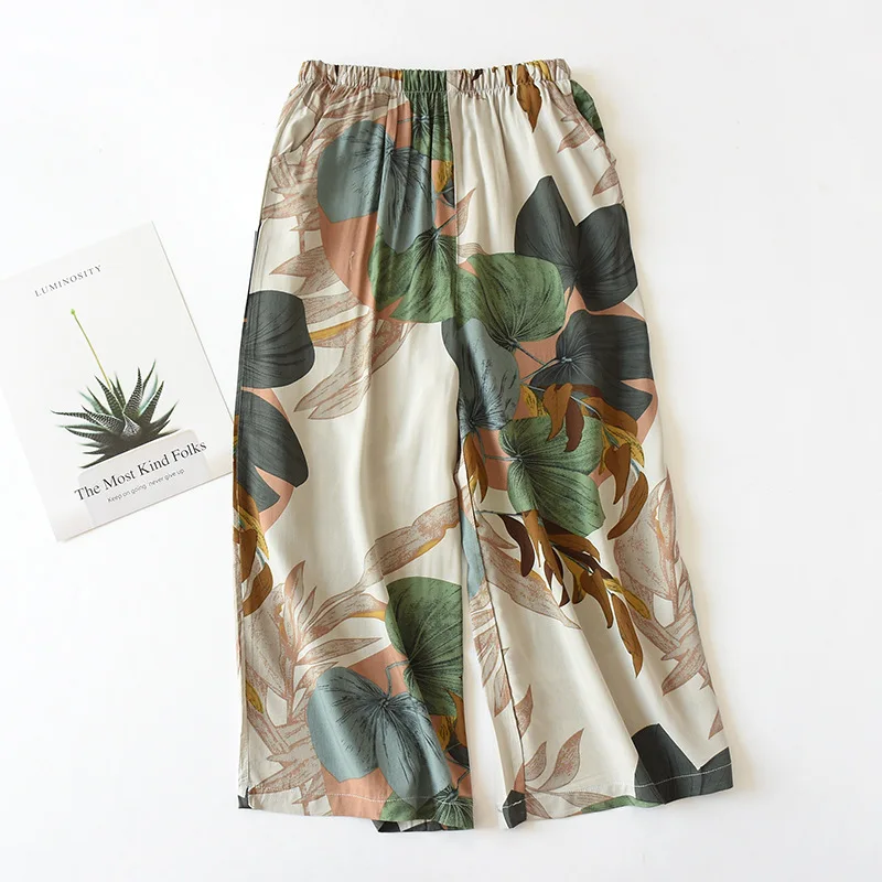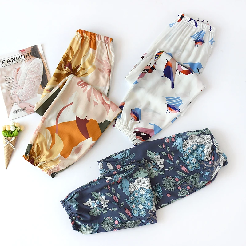 Женская летняя Пижама для сна Одежда с принтом ночные брюки одежда для сна для женщин укороченные брюки хлопковые брюки для сна