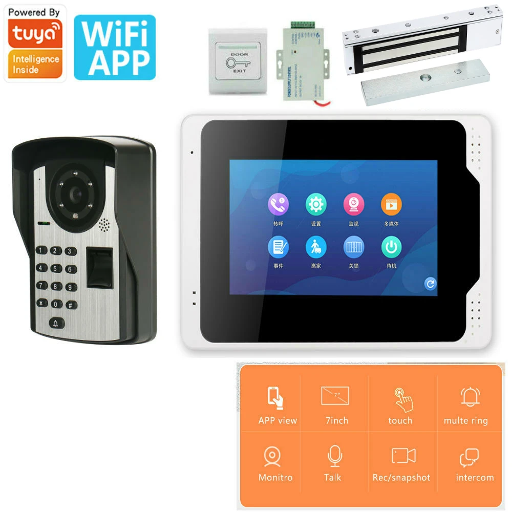 7 "проводной WiFi отпечаток пальца пароль видео домофон дверной звонок с удаленным мобильный телефон приложение домофон разблокировка видео