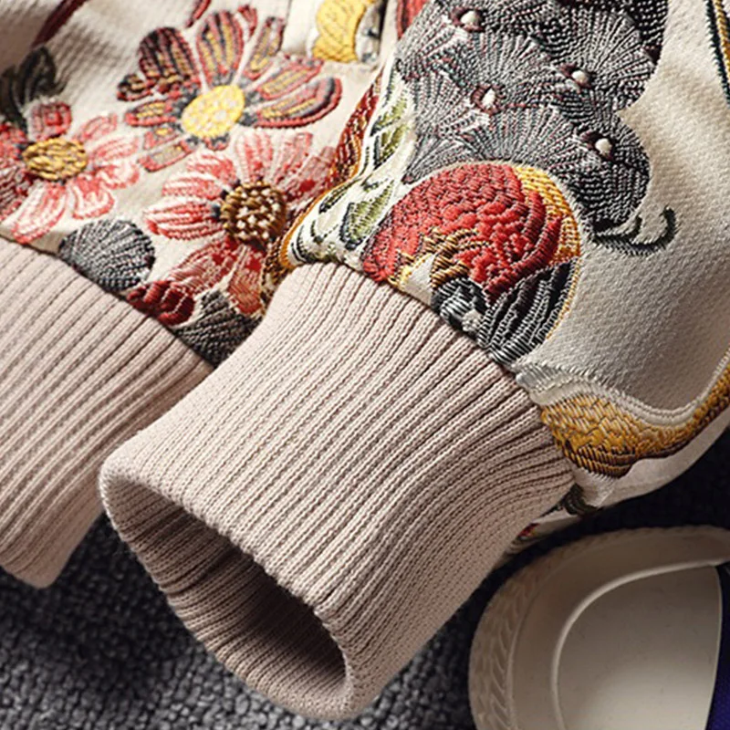 Мужская бейсбольная куртка в японском стиле с цветочной и журавлиной вышивкой, куртка-бомбер с воротником-стойкой, осеннее пальто