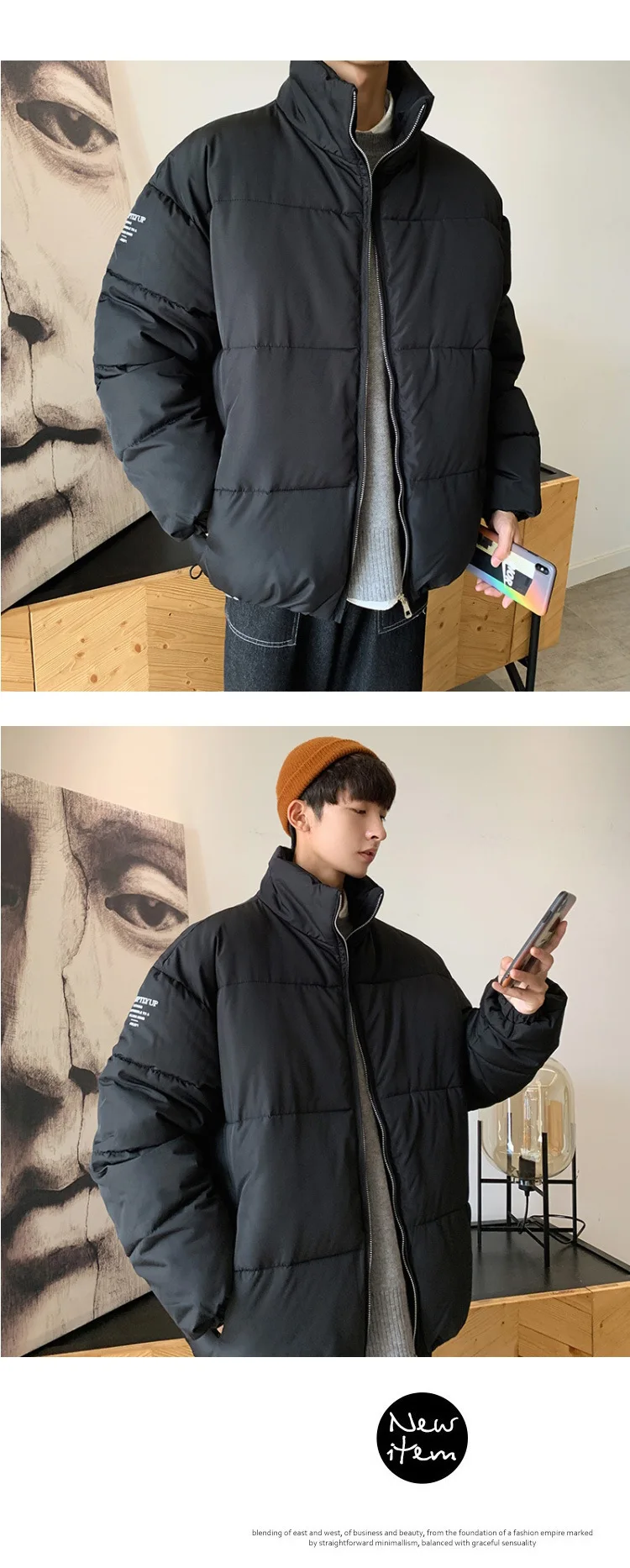 Зимняя однотонная парка, Мужская Толстая куртка с капюшоном, новинка 2021, теплое пальто в стиле Харадзюку, мужские повседневные куртки на молнии, ветрозащитная верхняя одежда