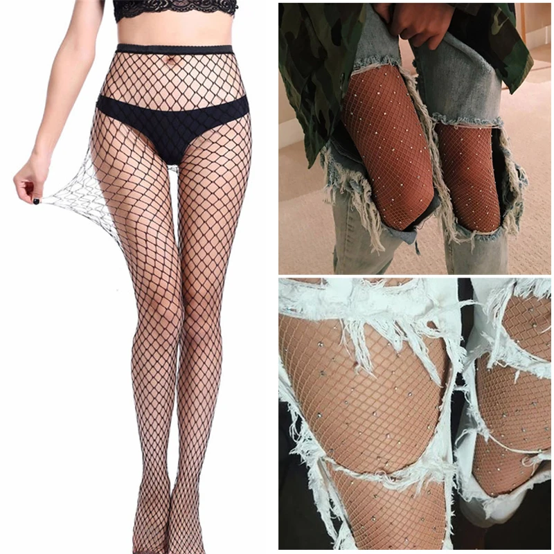 Модные женские Сетчатые эластичные колготки, стразы с кристаллами