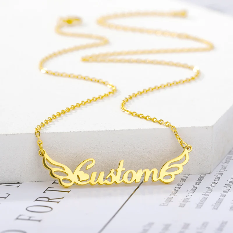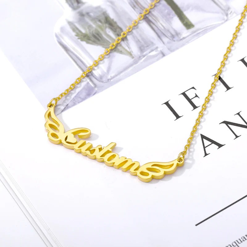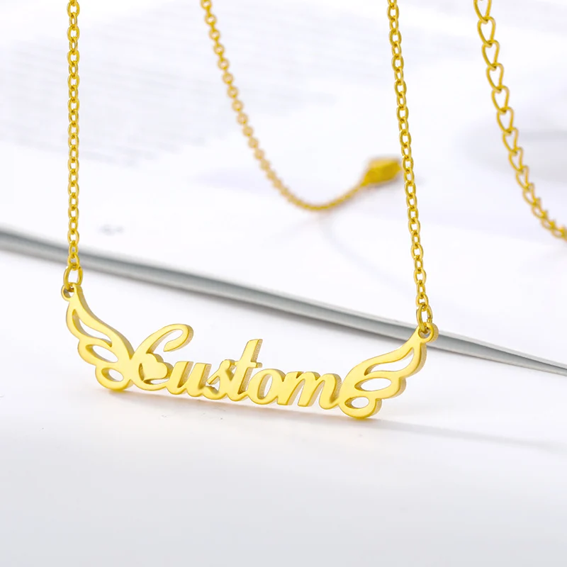 Индивидуальное ожерелье с именем модное ожерелье из нержавеющей стали, персонализированное ожерелье с крыльями, Золотое колье-чокер, подвеска, табличка, подарок