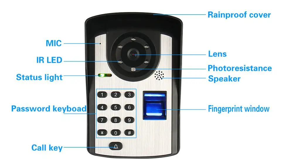 1 * внутренний монитор 1 * наружная камера 1 * Адаптер питания5 * карта RIFD