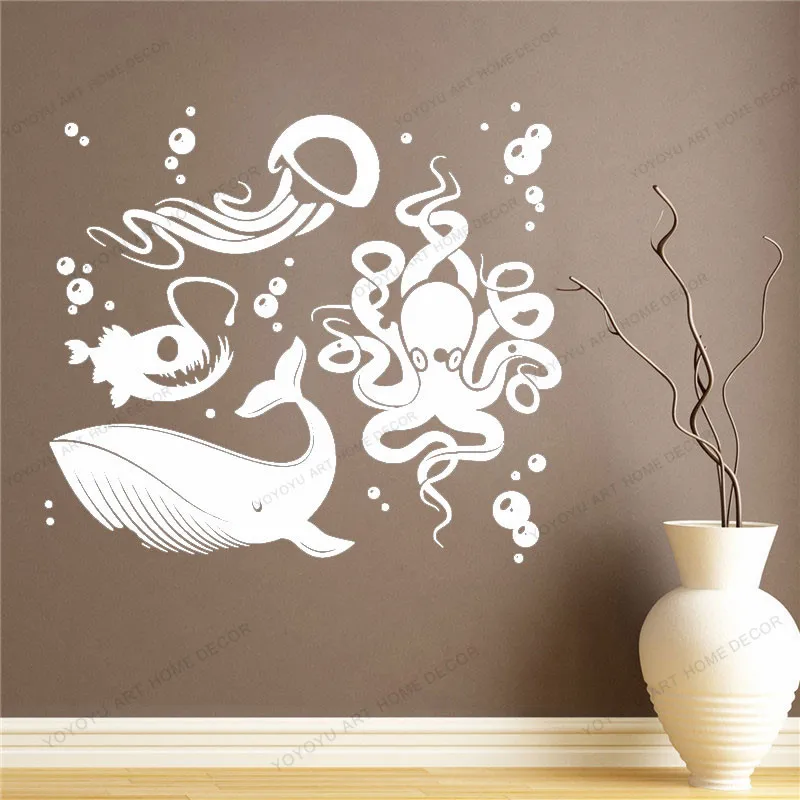Виниловая наклейка на стену в стиле осьминог, Кита, медузы, морской тематики, домашний декор, для спальни, ванной, CX496