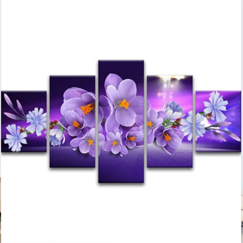 Алмазная картина с орхидеями, 5 панелей, алмазная вышивка, полная круглая квадратная вышивка, 5d мозаика «сделай сам», Набор для вышивки крестиком 3d,