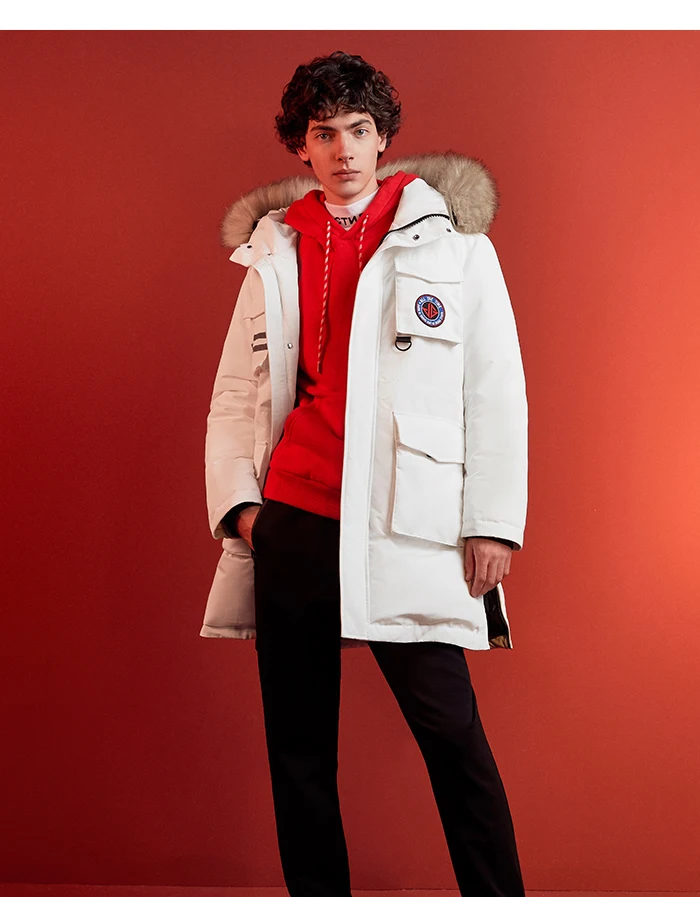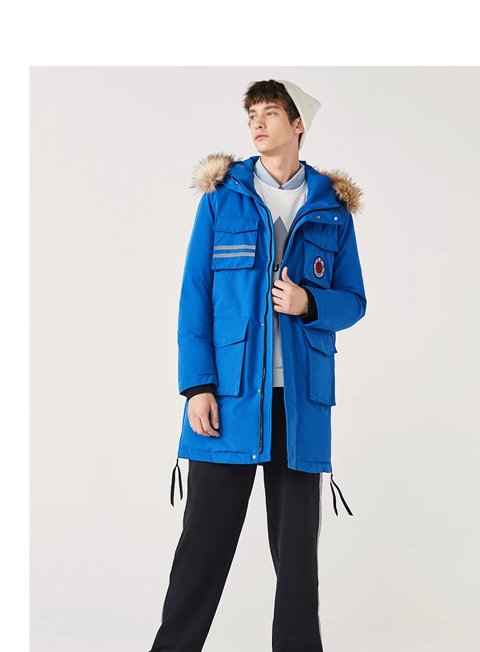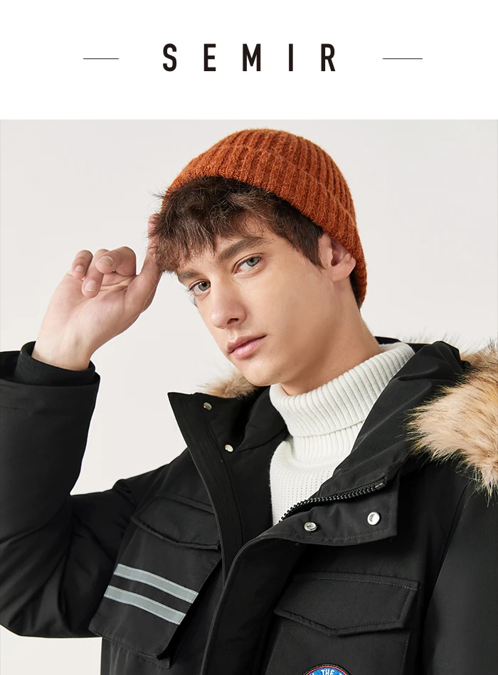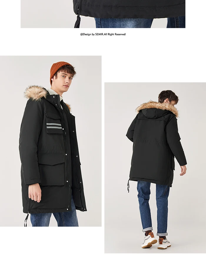 Пальто SEMIR мужское длинное с гусиным пухом, тренд для мужчин на зиму, большой меховой воротник, с капюшоном, ветрозащитное, модное зимнее пальто средней длины