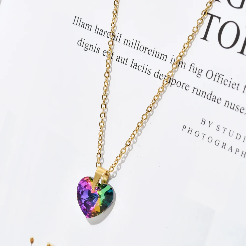 Цепочка ZMZY из нержавеющей стали с кубическим кристаллом, подвеска в форме сердца для женщин и девушек, подарочное ожерелье, женские аксессуары для ключиц