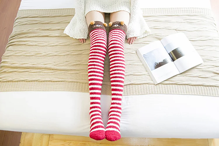 Новинка, зимние милые уютные длинные Компрессионные носки до бедра ...