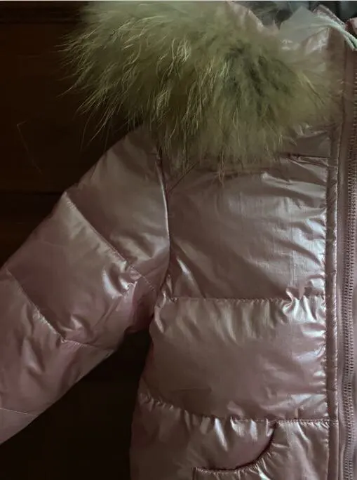Цвет яркий, как на картинке, мне нравится этот ярко-розовый, размер соответствует таблице, я думала, он будет маленький, но размер 90 сейчас 82 - ребенок будет носить в следующем году, ткань верха водонепроницаемый, без запаха. Крой аккуратный, по низу манжеты на рукавах и штанинах. Меховой воротник мягкий, как натуральный. Доставка около пары недель.