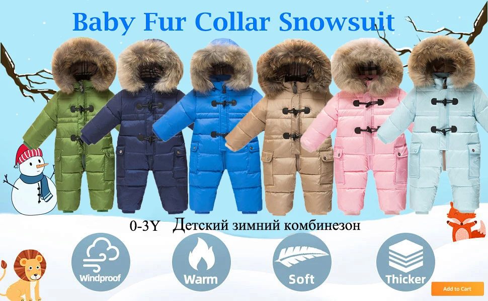 Комбинезон детский зимний на утином пуху, на возраст 0-3 года, 2021