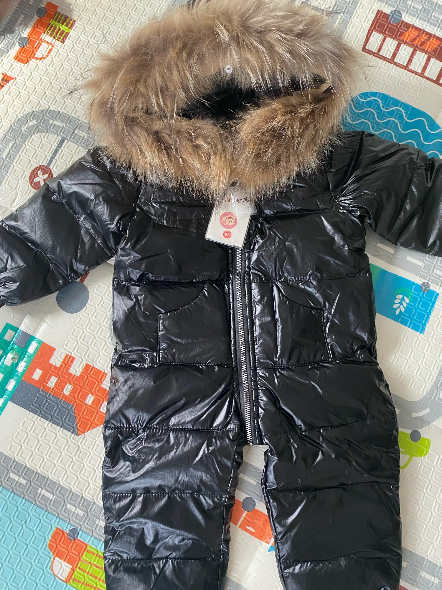 Классный комбез! Размер соответствует. Материал плотный, как прорезиненный. Мех нормальный, не такой как на фото, но вполне не позорный. Наполнителя достаточное количество Выглядит дороже своей цены ( брала на распродаже за 2100).Молния массивная, выглядит надёжно.