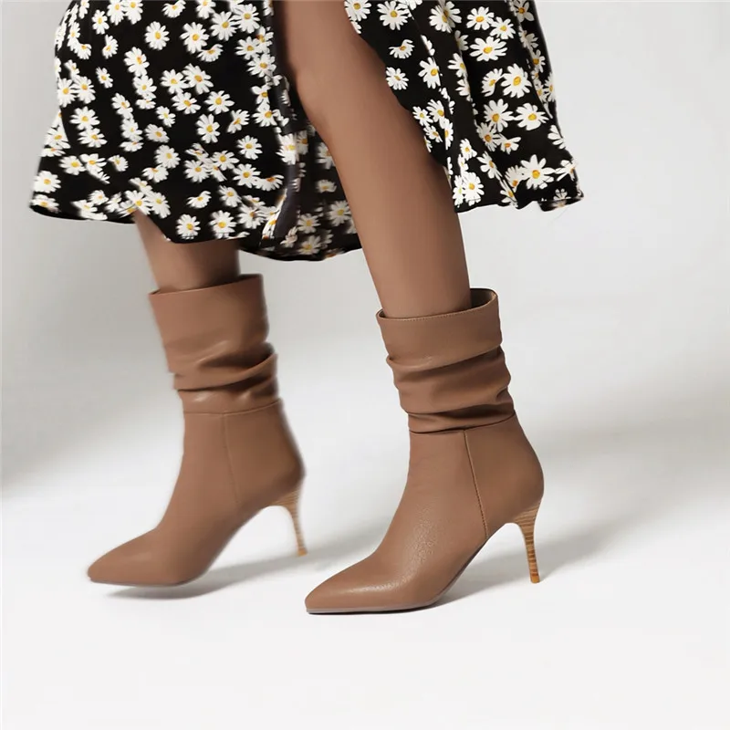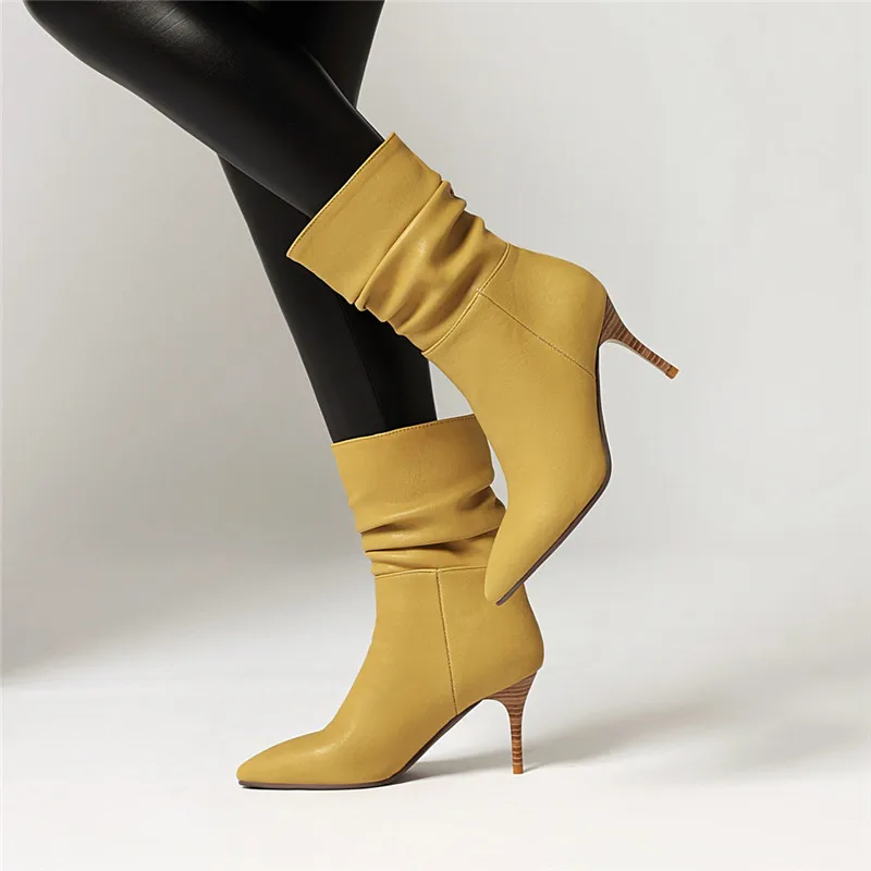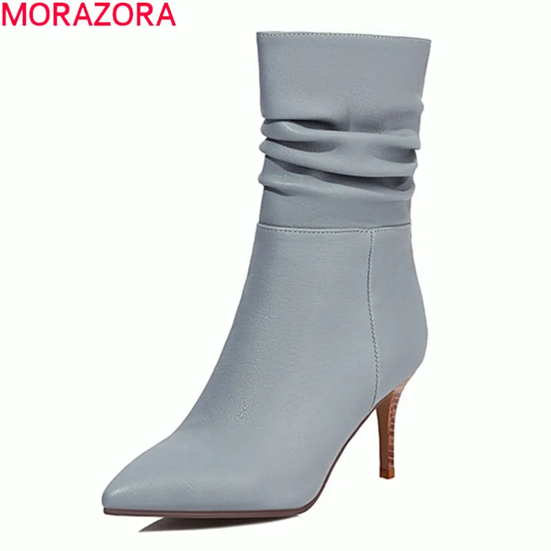 Женские однотонные ботильоны MORAZORA, черные ботильоны на высоком каблуке-шпильке с острым носком и плиссировкой, Осень-зима 2020 icon star icon star icon star icon star icon star