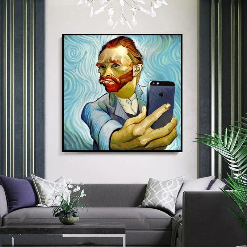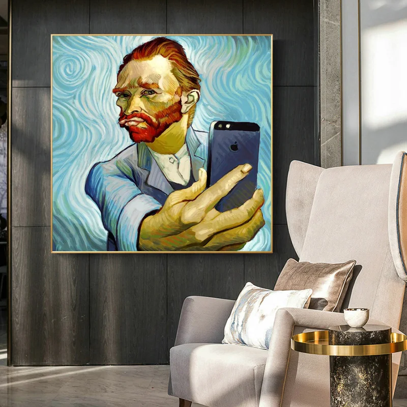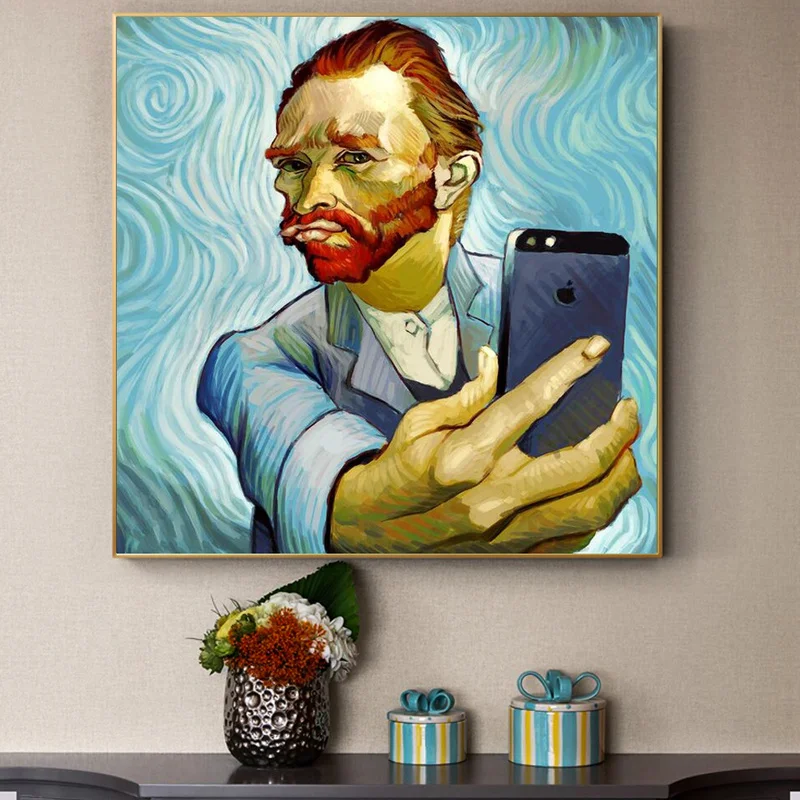 Ван Гог селфи по телефону Смешные картины на холсте абстрактная стена фотопортрет Ван Гога Картины домашний декор